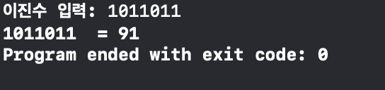 C언어에서 2진수를 10진수로 변환하는 방법입니다.
